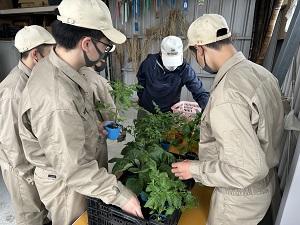 5月24日(水) 農業機械科3年生の様子です。自工とは、自動車工学の略称。エンジンのバルブ開閉機構について学んでいました。草花は、校内・校外の花壇の手入れをしています。